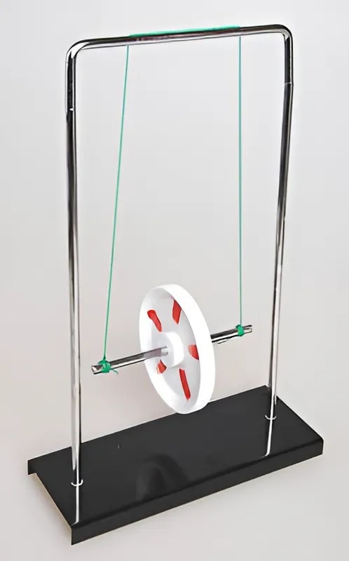 Маятник Максвелла предназначен для демонстрации многократного перехода энергии потенциальной в кинетическую и обратно, а также для демонстрации проявления инерции при вращении диска.