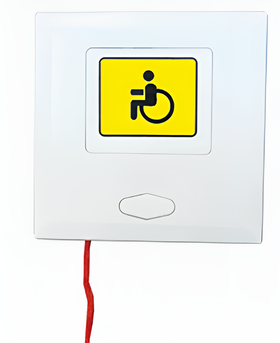 Во всех зонах здания, где посетитель с инвалидностью может остаться на время один (например, в санитарных комнатах), рекомендуется размещать кнопку вызова со шнуром, которая даст возможность вызвать помощь даже в случае, если человек упал.