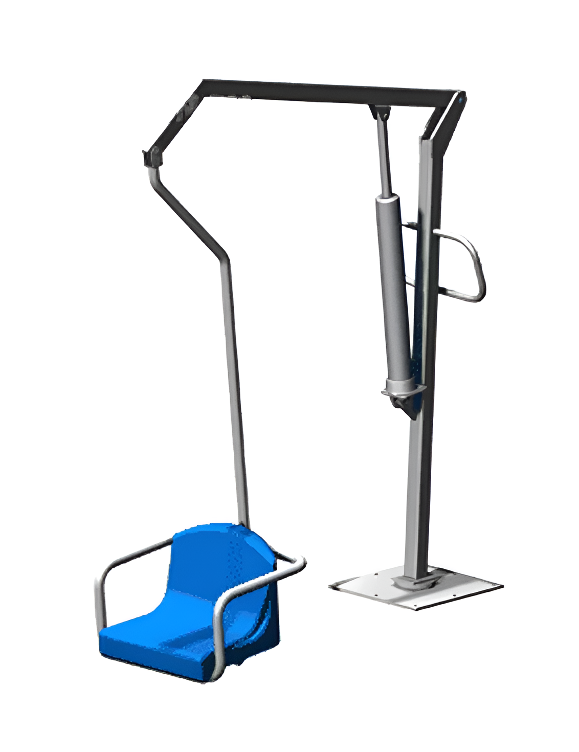 Стационарный подъемник для инвалидов, предназначен для перемещения, подъема и опускания человека в бассейн. Не требует специально оборудованного помещения. Может использоваться во всех бассейнах в зависимости от потребности в использовании.