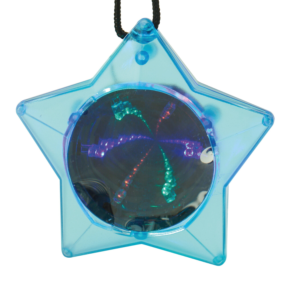 Игра «Бесконечное зеркало» создает оптическую иллюзию бесконечного светового тоннеля. Надо только нажать на встроенную цветную кнопку-переключатель.
