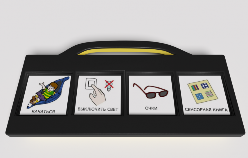 Партнер 4 игровой коммуникатор предназначен для развития и удовлетворения базовых потребностей детей, имеющих проблемы со слуховым, зрительным восприятием и коммуникацией. Представляет собой компактный легкий прямоугольный корпус с ручкой для удобного перемещения с места на место, на котором размещены 4 кнопки с окошками для демонстрационных изображений с подписями. Изготовлено из высококачественного ударопрочного пластика, имеет обтекаемые плавные формы без острых краёв и углов.