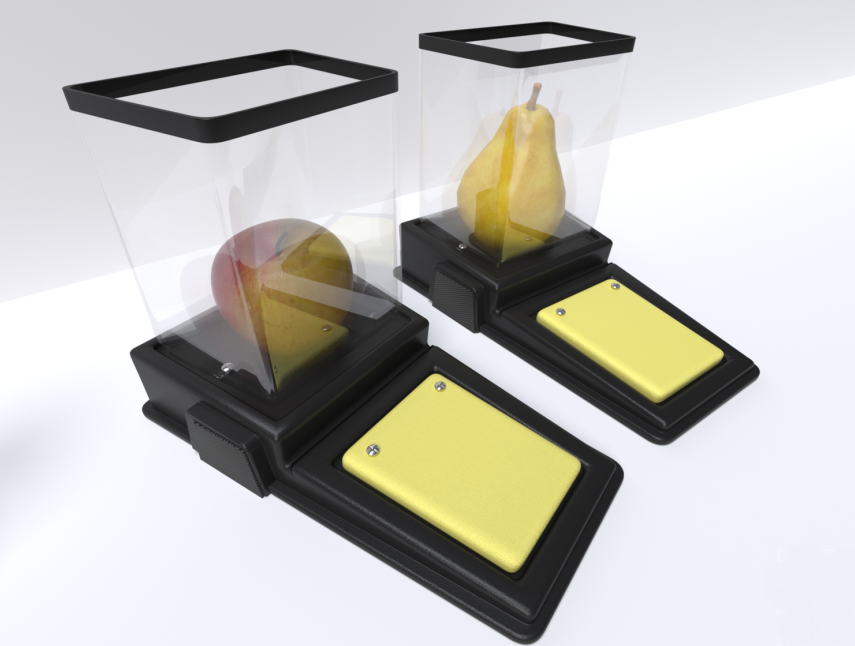 Представленное практичное устройство создано для обучения детей; подойдёт и для общего раннего развития, и для коррекционных занятий с детьми, имеющими ограниченные возможности здоровья. Представляет собой пластиковый корпус, на котором находится одна кнопка и прозрачный «стакан», в который можно поместить один муляж фрукта. Изготовлено из высококачественного ударопрочного пластика, имеет обтекаемые плавные формы без острых краёв и углов.