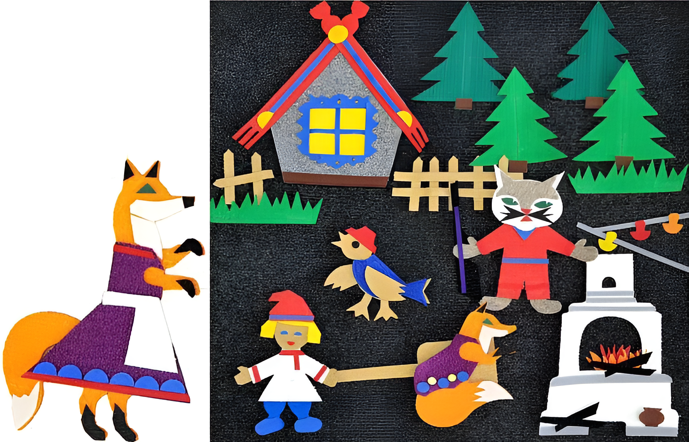 Персонажей и дополнительные элементы (печка, домик, деревья и др.) можно располагать в любом месте игрового поля. Благодаря этому ребенок может проиграть полный сюжет сказки. Герои как будто оживают и перемещаются по полю, создавая реалистичный сюжет.