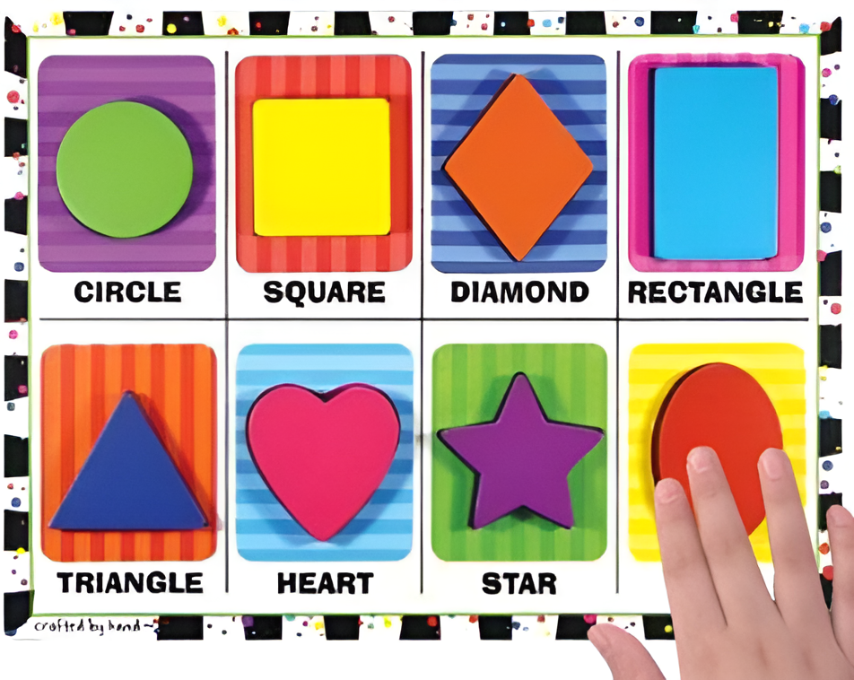 Подходят для обучения как незрячих, так и слабовидящих детей. Веселая головоломка включает в себя 8 предметов (круг, квадрат, ромб, прямоугольник, треугольник, сердце, звезда, овал) разных цветов.