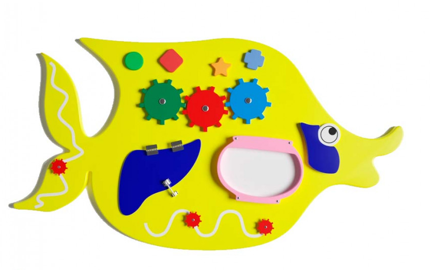 Бизиборд в виде желтой рыбки прекрасно подойдет для игр в одиночестве, с мамой и папой, а также в большой компании, постоянно привлекая внимание детей. Бизиборд обладает всеми необходимыми элементами, которые удивляют, а самое главное развивают у ребенка логическое мышление, концентрацию внимания, а также память, мелкую моторику и не только.