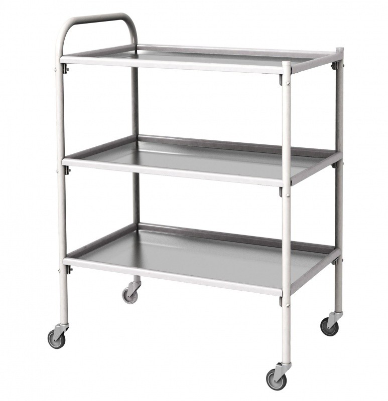 Столик инструментальный передвижной металлический с тремя полками (мебельные колеса)