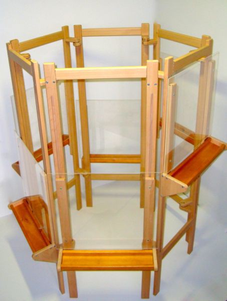 Мольберт, состоящий из шести частей, выполнен из небьющегося стекла и идеально подходит для групповых занятий в детских садах и центрах раннего развития. Рисунок, выполненный на мольберте, можно сохранить на бумаге - приложите к свежему рисунку лист ватмана. Если же рисунок немного подсох, увлажните его, слегка побрызгав водой, а потом приложите бумагу.