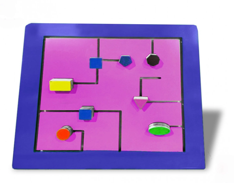 Тактильно-развивающая панель  с геометрическими фигурами- это красивая игровая зона, выполненная из качественных материалов, которая не оставляет зацепок в детских ручках. Поле с множеством тропинок по всей площади. Также в игре есть 7 разных фигурок, которые отличаются друг от друга по форме. Они легко передвигаются по всему полю. Тактильно-развивающая панель заинтересует как маленьких детей, так и постарше, а родителям поможет сохранить дом в целости и сохранности. Она подойдет для домашнего использования и для специальных учреждений.