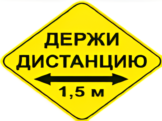 Главная Каталог Оборудование для профилактики коронавируса Наклейка соблюдай дистанцию 1,5м (ромб 426мм)