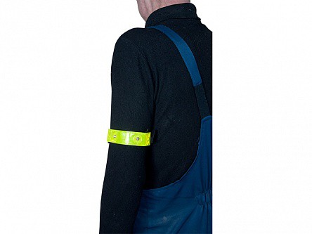 Световозвращающий светодиодный браслет на текстильной застежке представляет собой изделие из ткани со световозвращающим покрытием желтого цвета и четырьмя красными светодиодами с тремя режимами работы.