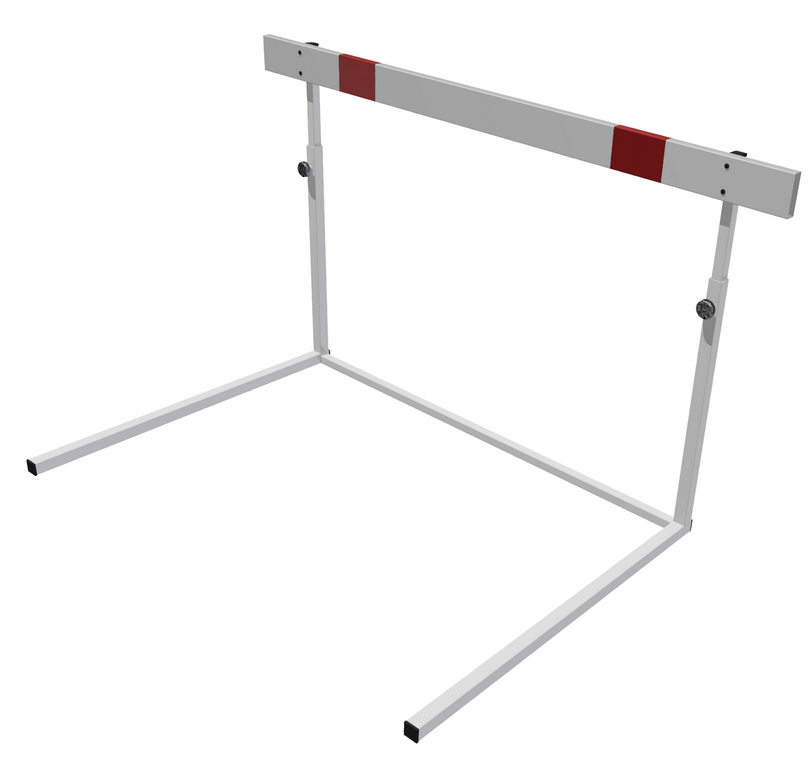 Планка закреплена на подвижных ножках, позволяющих регулировать высоту фиксации планки. Сварные швы данного изделия тщательно обработаны и зачищены. Поверхность барьера окрашена порошковым напылением в электростатическом поле.  Длина и вес ножек барьера подобраны как противовесы - что препятствует опрокидыванию снаряда при легком задевании его спортсменом.