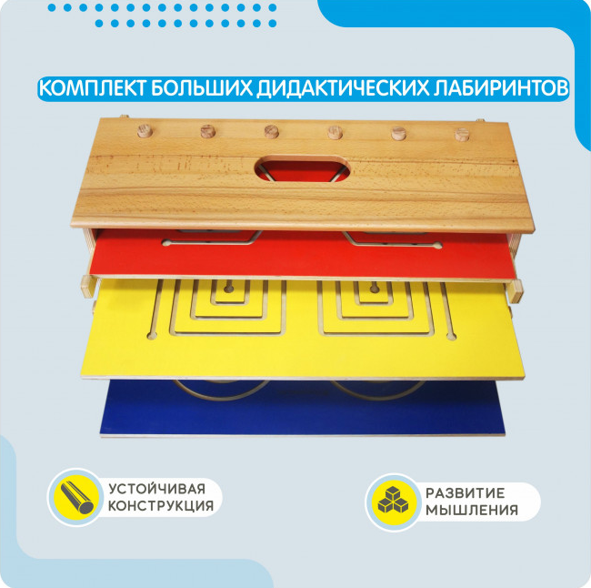 Комплект дидактических лабиринтов №1 состоит из 4-х разноцветных досочек, на каждой из которых размещены межполушарные тактильные лабиринты с различными рисунками. В комплекте также имеется подставка для удобства хранения и использования. Отлично помогает развивать межполушарные связи и мелкую моторику детей как на занятии со специалистом, так и в домашних условиях. Набор научит малышей решать задачи и принимать решения в игровой форме. Благодаря яркому дизайну и разнообразию лабиринтов, он заинтересует и занесет в мир увлекательных игр даже самых маленьких детей.
