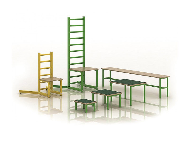 • Скамейки-вкладыши имеют разную высоту, используются для тренировки силы ног, координации, равновесия, внимательности.