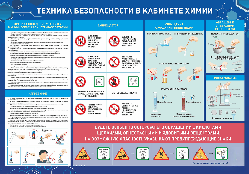 Главная Каталог Стенды Кабинеты Химия Стенд-уголок "Техника безопасности на уроках химии"