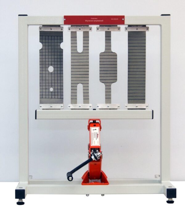 Учебный стенд "Изучение напряжений" позволяет демонстрировать принцип Сен-Венана, изучать концентрацию напряжений и распределений напряжений на примере обратимой деформации пластичных образцов различного профиля.