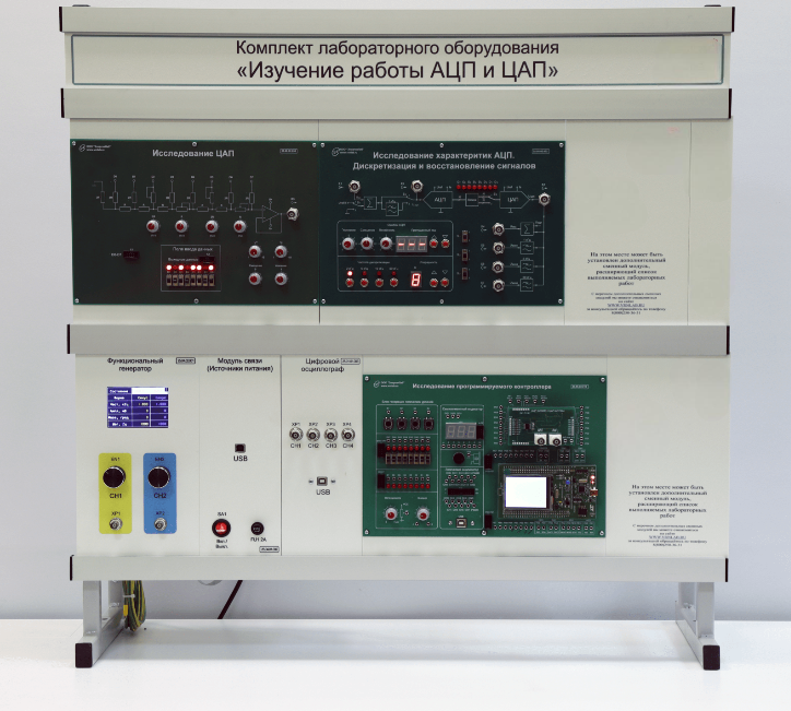 Комплект лабораторного оборудования «Изучение работы АЦП и ЦАП» предназначен для проведения лабораторно-практических занятий в учреждениях начального профессионального, среднего профессионального и высшего профессионального образования, для получения базовых и углубленных профессиональных знаний, и навыков.
