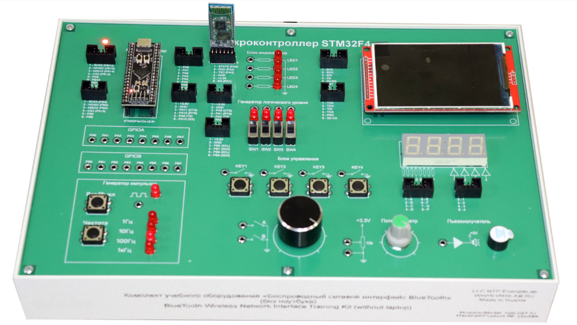 Учебное оборудование предназначено для изучения беспроводного интерфейса Bluetooth, принципов работы и настройки приемопередатчиков Bluetooth в рамках лабораторных работ, проводимых в высшем учебном заведении.
