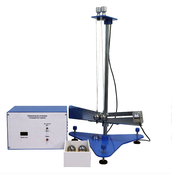 Установка предназначена для исследования процесса соударения твердых тел и проверки выполнения законов сохранения импульсов. Установка позволяет определить время соударения шаров и коэффициенты восстановления скорости и энергии для случая упругого удара шаров.