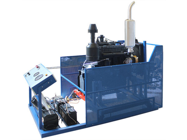 Стенд-тренажер состоит из установленного на передвижную раму действующего двигателя с навесным оборудованием. Конструкцией стенда предусмотрен свободный доступ ко всем узлам и агрегатам, тем самым обеспечивается возможность осмотра, регулировки систем и механизмов.