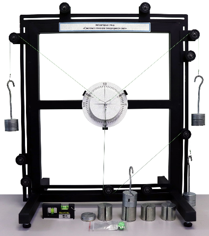 Учебное оборудование предназначено для проведения работ при изучении раздела «Теоретическая механика» курса технической механики. Учебный стенд позволяет изучить плоскую систему сходящихся сил и экспериментальным методом определить величину и направление равнодействующей силы.