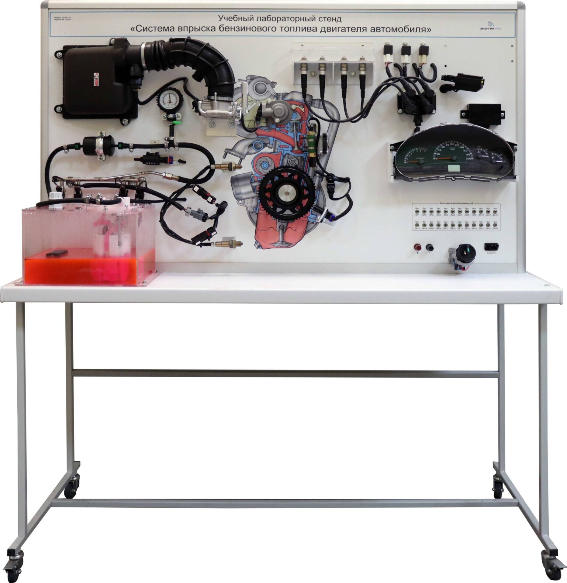 Учебный лабораторный стенд предназначен для изучения систем питания и управления инжекторным двигателем.