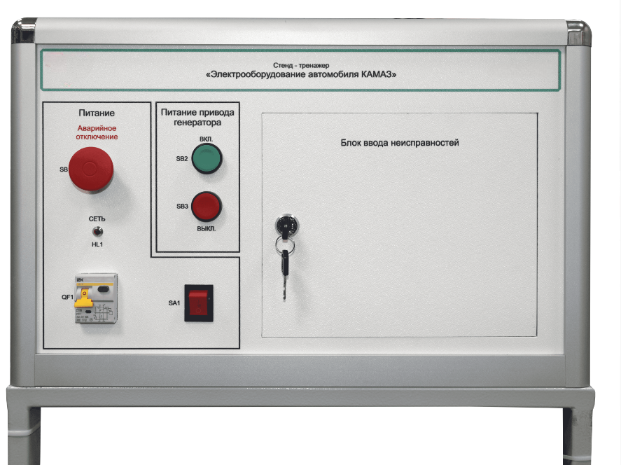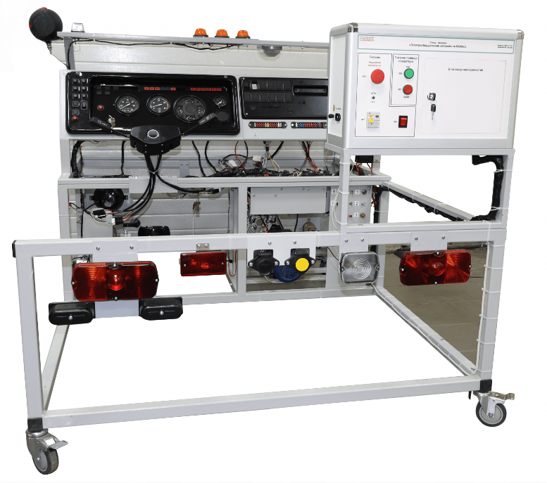 Стенд-тренажер предназначен для изучения электрооборудования автомобиля КамАЗ, отработки навыков поиска и устранения типовых неисправностей, которые возникают в процессе эксплуатации автомобиля, техническому обслуживанию и ремонту автомобиля, получению навыков по диагностике неисправностей электрооборудования.