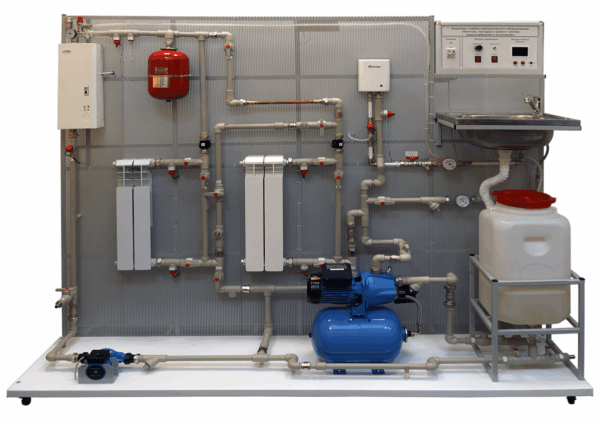 Стенд предназначен для проведения лабораторных работ по изучению и монтажу системы водоснабжения и системы отопления.