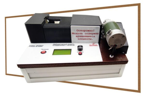 Лабораторная установка представляет собой моноблок на котором установлена панель управления, приводной электродвигатель с редуктором, муфта, толкатель, винтовая пара, датчик усилия с упором, датчик перемещения.