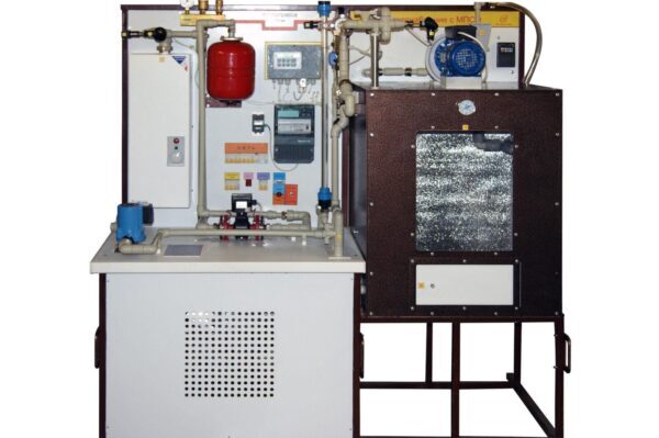 В состав стенда входит теплоустановка – сборный каркас, на котором размещены все исследуемые устройства и измерительные приборы и теплокамера – оборудованная вытяжной вентиляцией c регулируемой частотой вращения, датчиками наружной и внутренней температуры, контроллером для автоматического поддержания температуры.