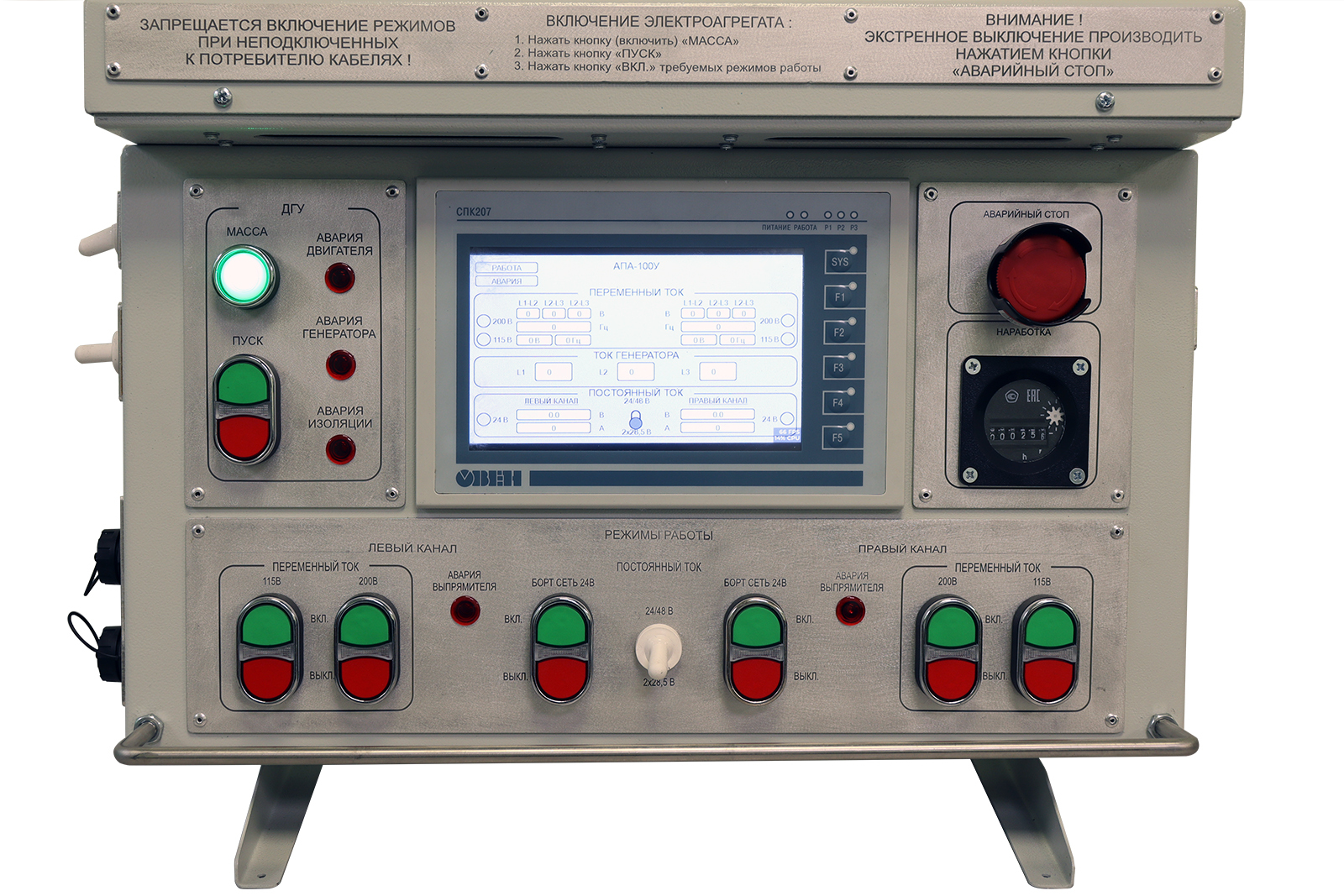 Учебный тренажер обеспечивает отработку навыков работы с аэродромным электроагрегатом «АПА-100У», а также моделирует возможные аварии с последующей индикацией на панели пульта дистанционного управления.