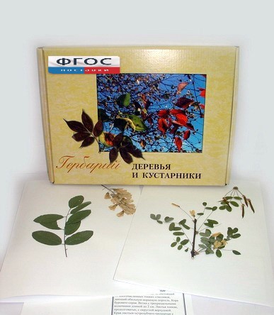 В гербарии представлены 20 видов наиболее распространенных деревьев и кустарников, как дикорастущих, так и культурных. Некоторые используются для озеленения городов в садах и парках. К гербарию прилагается список с наименованием растений.
