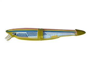 На модели представлены следующие детали строения ланцетника: хорда, нервная трубка, рот, жаберные щели, кишка, хвостовой плавник